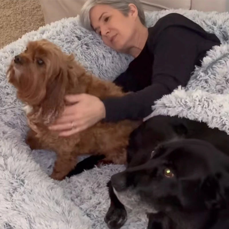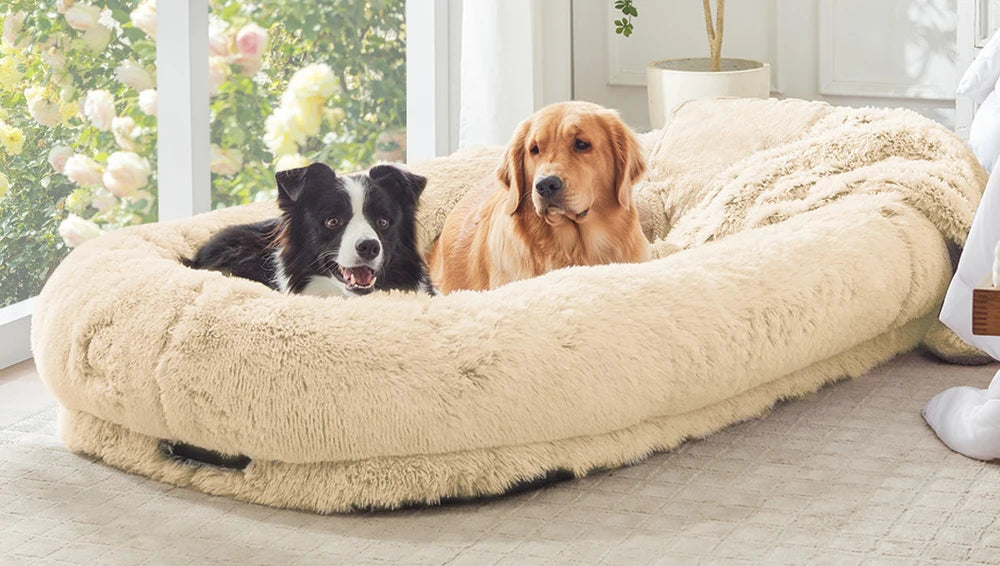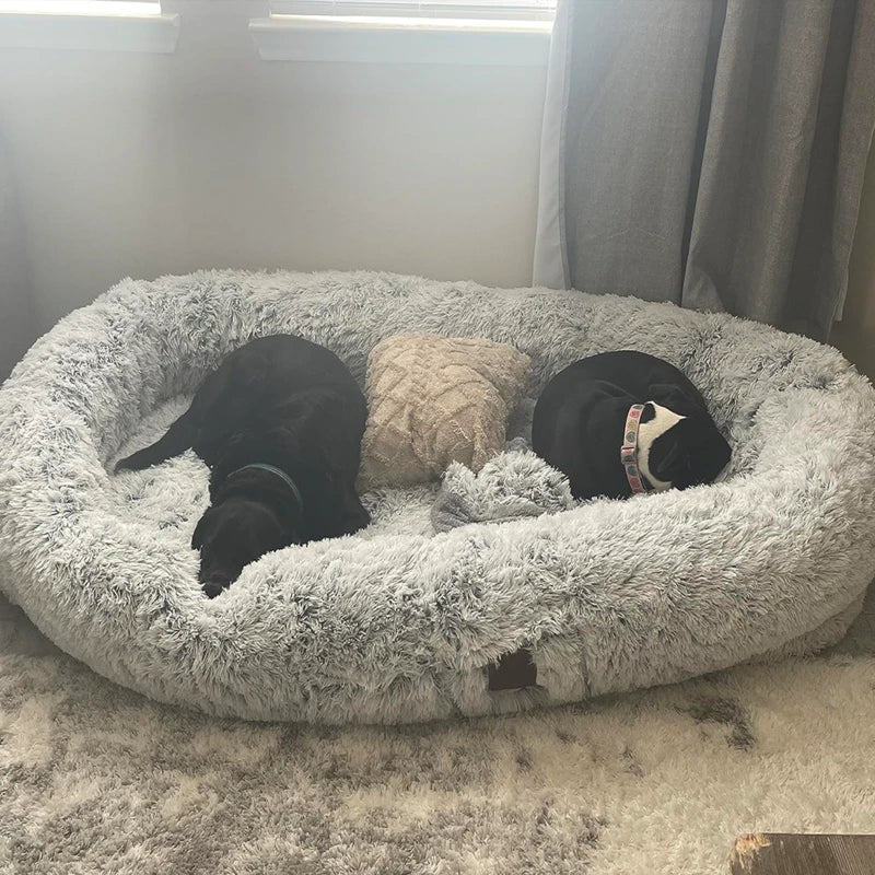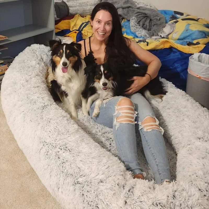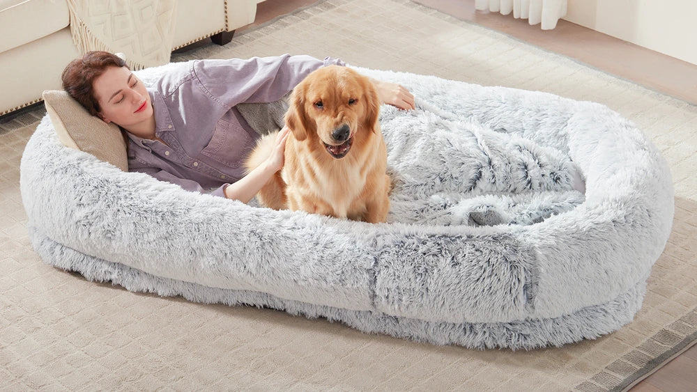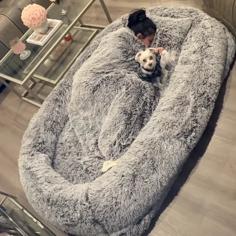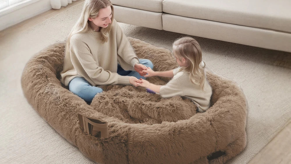 Yes! The oversized 71"x45"x14" design comfortably accommodates both adults and pets for napping, lounging, or cuddling together.