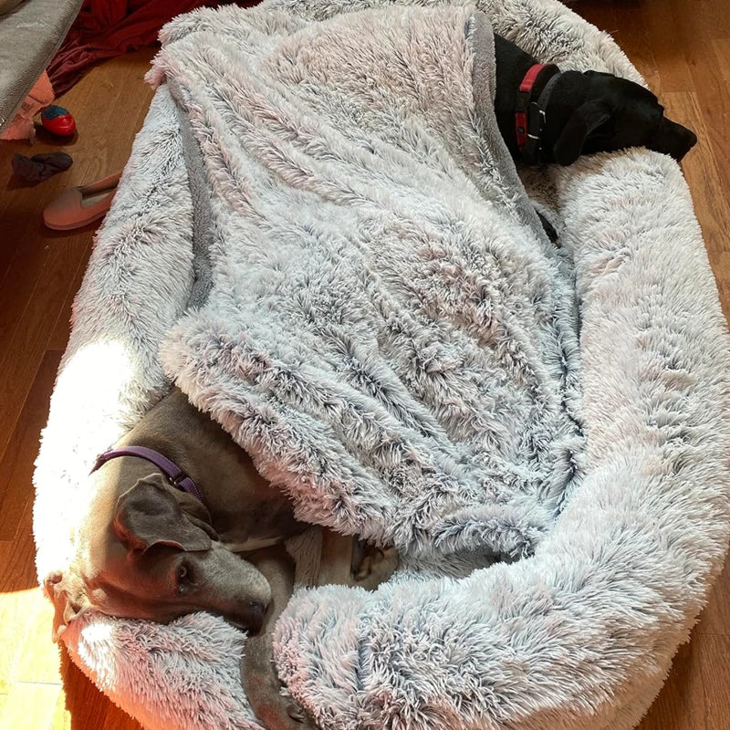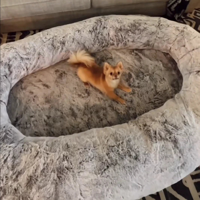The bed is made with high-quality faux fur and durable materials designed to withstand playful pets, while keeping comfort and softness intact.